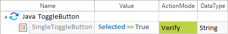 In diesem Beispiel wird verifiziert, ob der Toggle Button SingleToggleButton in der Testapplikation ausgewählt ist:
