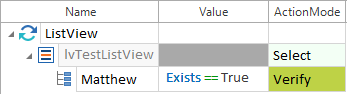 ListView-Eintrag auswählen In diesem Beispiel wird verifiziert, ob der Eintrag Matthew in der ListView IvTestListView vorhanden ist: