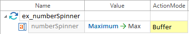 Der höchste auswählbare Wert des NumberSpinner NumberSpinner wird in den Buffer Max geschrieben. Der Wert der Eigenschaft Maximum wird in den Buffer Max mit dem ActionMode Buffer geschrieben.