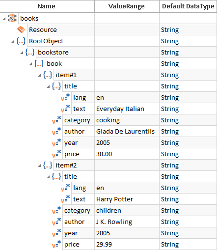 Elemente in JSON Arrays werden über ihre Position identifiziert. Den Elementen wird als Name item#<Position> zugewiesen. Für den Platzhalter <Position> wird die Nummer ihrer Position angegeben.
