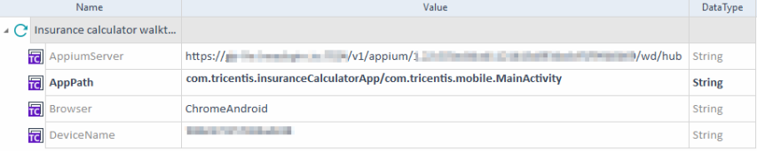 Nachdem Sie Ihr Android- oder iOS-Gerät für die Testautomatisierung vorbereitet, sich mit dem Tricentis Mobile Agent verbunden und Module mithilfe des Mobile Scan erstellt haben, müssen Sie Testkonfigurationsparameter (TCPs) angeben.