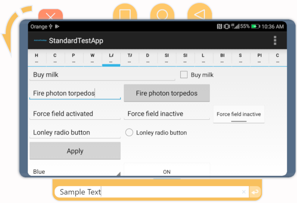 Im Fenster Live View können Sie während des Mobile Scan mit dem mobilen Gerät interagieren. Über Interaktionen mit dem Live View-Fenster können Sie bei der Aufzeichnung in der Applikation navigieren. So können Sie beispielsweise die Funktion Next Screen verwenden oder nicht geöffnete Elemente aufzeichnen. Diese Funktionen sind besonders hilfreich, wenn Sie eine Remote-Verbindung mit dem Gerät, dem Emulator oder dem Simulator herstellen.