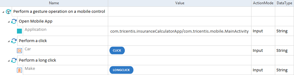 Geben Sie in der Spalte Value die Gesture-Operation an, die Sie ausführen möchten.