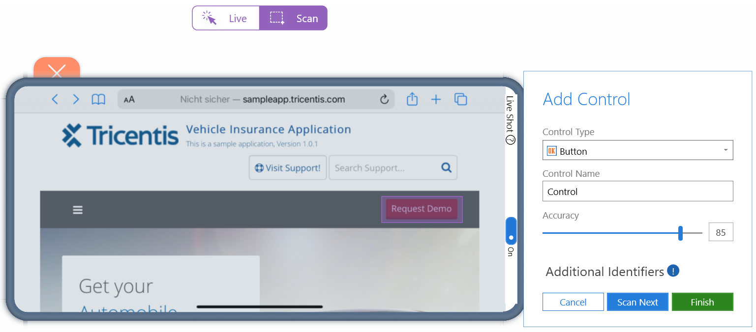 Scan Next, um das Control zu speichern und andere Controls im Fenster Live View auszuwählen.