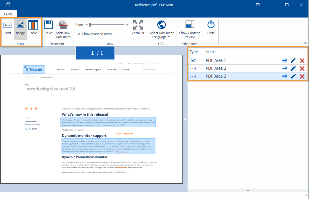 Wählen Sie Text, Image oder Table im Menüband aus und markieren Sie einen oder mehrere Bereiche, die Sie ausschließen möchten.
