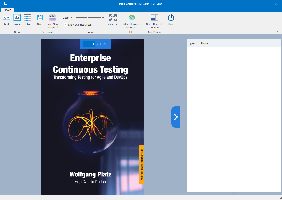 Dadurch öffnet sich das Fenster PDF Scan mit der PDF View auf der linken und der Controls View auf der rechten Seite des Fensters.