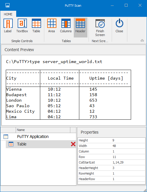 4. Standardmäßig verwendet Tricentis Tosca die erste Zeile als Kopfzeile einer Tabelle. Wenn Sie eine andere Zeile als Kopfzeile verwenden möchten, wählen Sie  Header und definieren Sie sie im Bereich Content Preview.