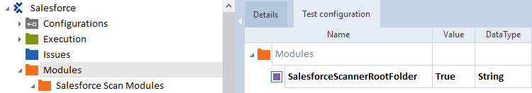 Wenn Sie Ihre Module mit dem Salesforce Scan erstellen, fügt Tricentis Tosca automatisch den TCP SalesforceScannerRootFolder dem Stammordner hinzu, der Ihre Module enthält. Der Wert dieses Parameters ist True.