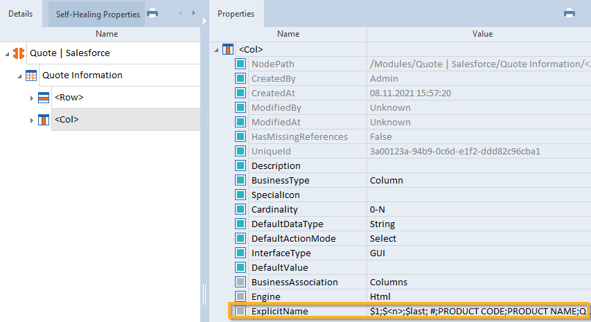Der XScan identifiziert Tabellen in Salesforce CPQ als Tabellen. Sie können sie wie in Kapitel "Tabelle" beschrieben steuern.