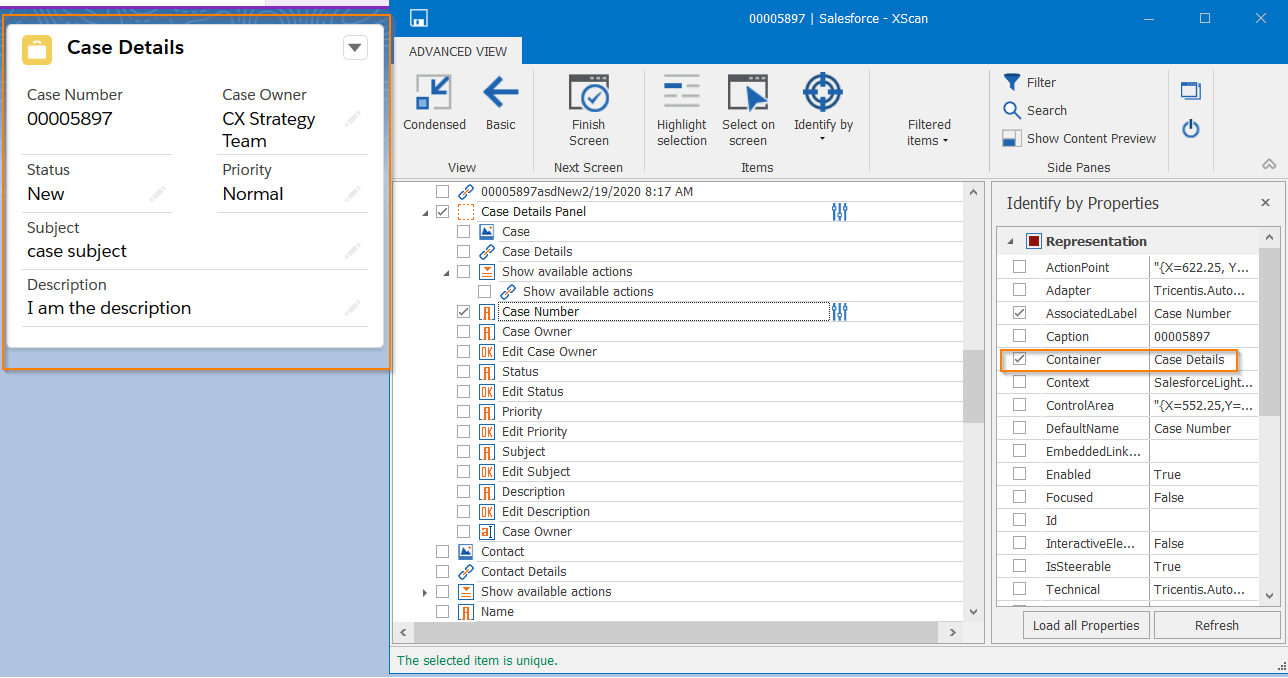Um Controls eines Bereichs eindeutig zu identifizieren, verwendet Tricentis Tosca im XScan benutzerdefinierte Container-Eigenschaftenwerte. Die Eigenschaft Container hat für die drei Bereichstypen folgende Werte: