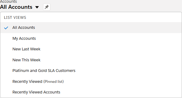 In diesem Beispiel wählen Sie My Accounts aus dem List View Picker in der Listenansicht All Accounts.