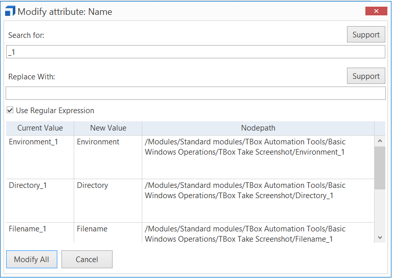 Aktivieren Sie im Dialog Module attribute: Name das Kontrollkästchen Use Regular Expression.