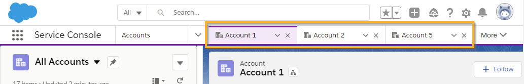 Service Console-Registerkarten in Salesforce Lightning Experience