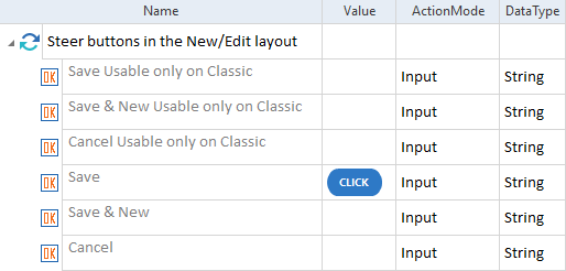 Im Layout New/Edit haben Sie drei Schaltflächen: