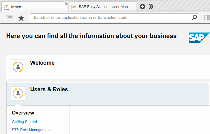 Verwenden Sie das Modul Netweaver Index Page aus der Standard-Untermenge, um den Reiter Index zu steuern. Dieser Reiter befindet sich in der linken oberen Ecke des Fensters des SAP Netweaver Business Client.