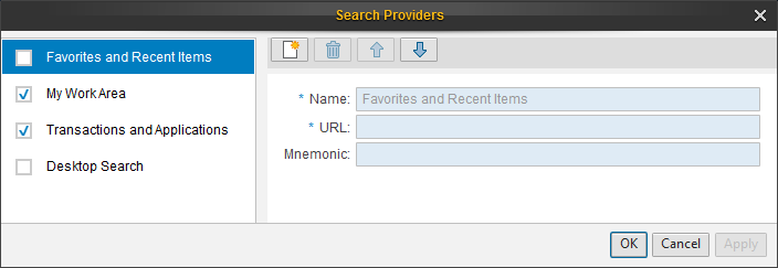 Bevor Sie dieses Modul für die Testautomatisierung von Controls in SAP Netweaver Business Client-Verbindungen verwenden, müssen Sie die Optionen für Search Providers aktivieren oder deaktivieren. |