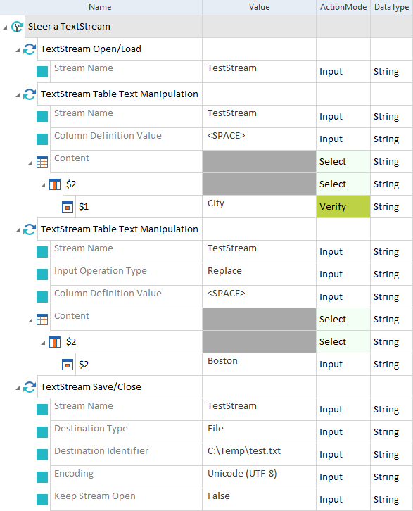 Um Text aus einer externen Quelle zu laden, entweder um den aktuellen Inhalt eines TextStreams zu ersetzen oder um ihn anzuhängen, verwenden Sie das Modul TextStream Open/Load.