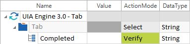 UIA TabControl - Reiter auswählen In diesem Beispiel wird verifiziert, ob der Reiter Erledigt im TabControl Registerkartenreihe ausgewählt ist: