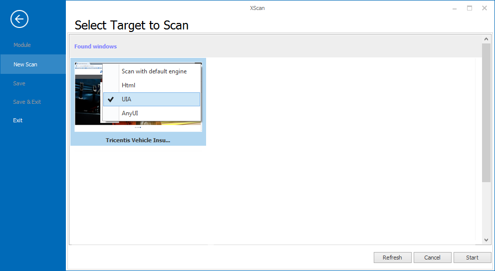 UIA 3.0 Module werden unter Verwendung des Tosca XScan erstellt. Um Module mit der Tosca UIA Engine zu erstellen, gehen Sie wie folgt vor: