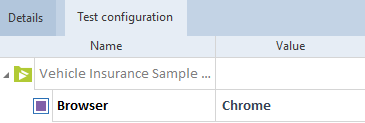Der Name des Testkonfigurationsparameters muss Browser sein. Geben Sie in der Spalte Value einen der folgenden Werte ein: