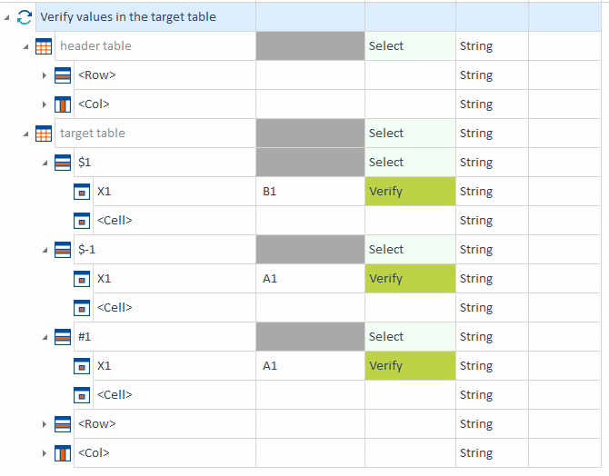 Die Kopfzeilentabelle in demselben Testschritt muss die Aktion Select verwenden.