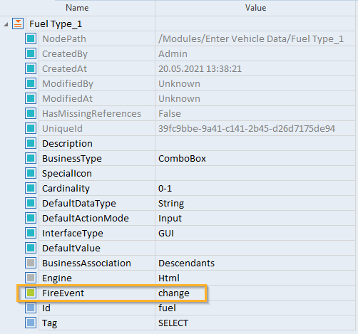 Sie können jedem in diesem Kapitel erwähnten Control-Typen den Steuerungsparameter FireEvent hinzufügen. Dazu müssen Sie den Event-Handler im Feld Value ohne das Präfix on angeben. Geben Sie beispielsweise anstelle von onclick den Wert click an. Beachten Sie, dass alle Bezeichnungen zwischen Groß- und Kleinschreibung unterscheiden.