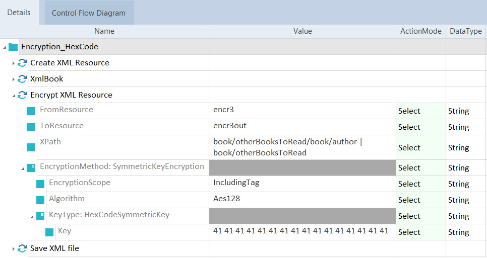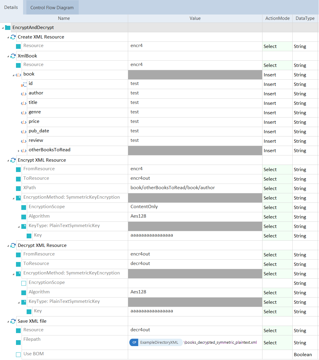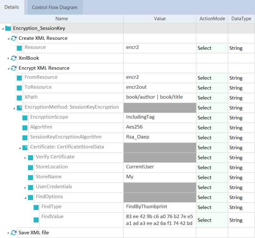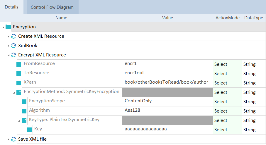 Um Daten zu verschlüsseln, verwenden Sie das Modul Encrypt XML Resource.