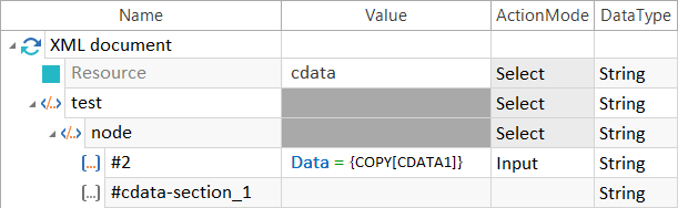 In diesem Beispiel wird der zweite CData-Abschnitt des CData-Elementes in die Resource CDATA1 kopiert.