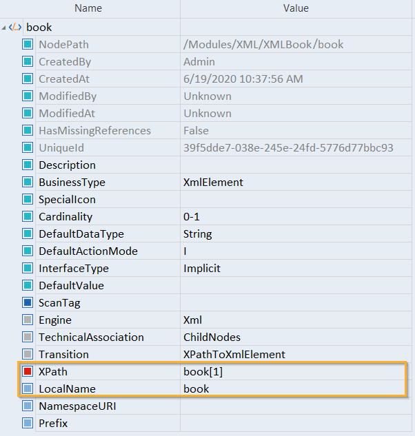 Erstellen Sie den Konfigurationsparameter Transition manuell und definieren Sie XPathToXmlElement als Wert des Parameters.