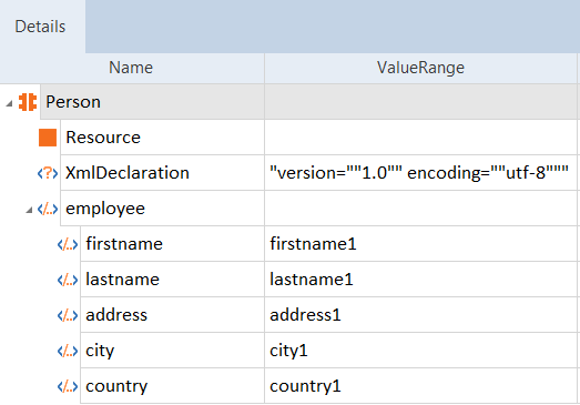 Das folgende Beispiel zeigt ein XSD-Schema, das die Struktur eines XML-Dokuments beschreibt und darstellt, wie sowohl das Schema als auch die Module im Tosca Commander™ angezeigt werden, nachdem sie mit dem API Scan aufgezeichnet wurden.