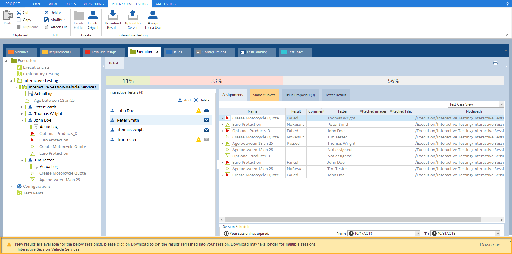 Testmanager können Interactive Test-Sessions abonnieren. Wenn sie dies tun, sehen sie immer die neuesten Testergebnisse und stellen sicher, dass alle Änderungen den zugewiesenen Testern zur Verfügung stehen.