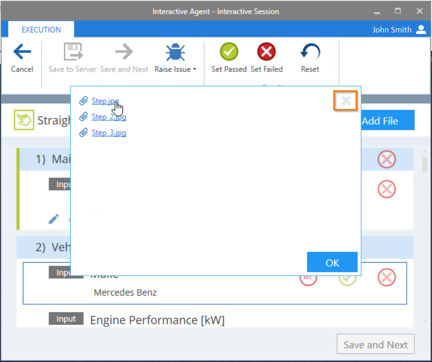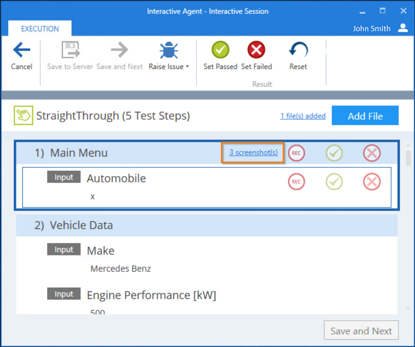Um weitere Informationen in Ihren interaktiven Testfällen bereitzustellen, können Sie während des Tests Maus- und Tastaturinteraktionen aufzeichnen. Der Interactive Testing Agent fügt die aufgezeichneten Interaktionen als Screenshots zu Ihren Testschritten oder Testschrittwerten hinzu. Beim Hochladen Ihrer Testergebnisse auf den Server speichert der Interactive Testing Agent Ihre aufgezeichneten Screenshots und Dateianhänge als ZIP-Datei im Tricentis File Service.