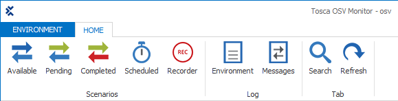 Verwenden Sie das Home-Menü vom Tosca OSV Monitor, um mit Ihren OSV-Environments, -Szenarien und -Nachrichten zu arbeiten.