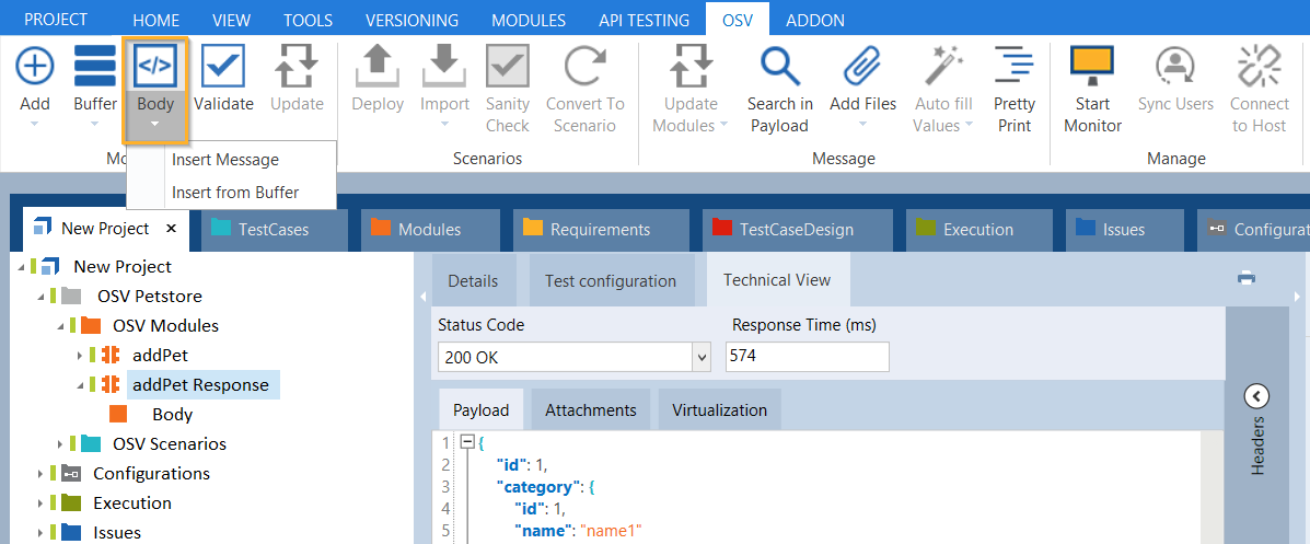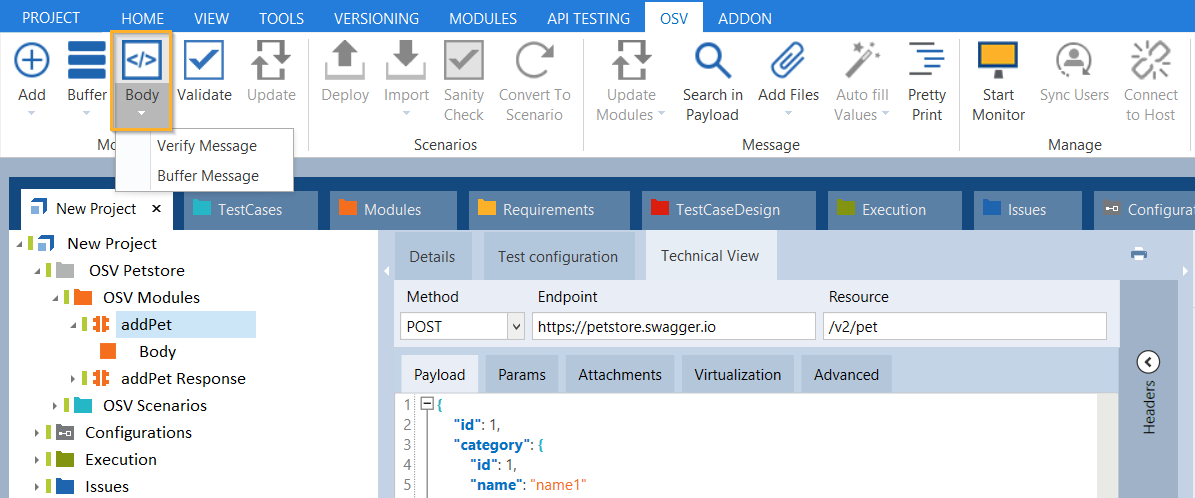 Verwenden Sie das OSV-Menü, um Body-Modulattribute aus dem Textkörper Ihrer Request-Nachricht oder Response-Nachricht zu erstellen.