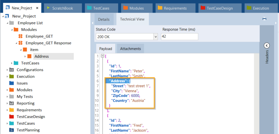Hinzugefügtes Tree-Modulattribut Address mit Knoten