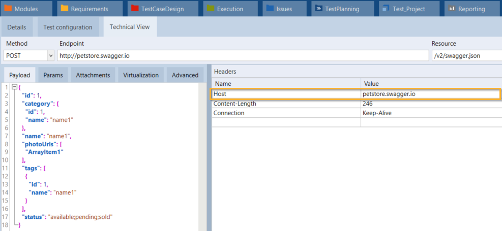 Host im Bereich Headers Das System erstellt automatisch einen grünen Buffer mit dem Präfix $ für den Bezeichner.