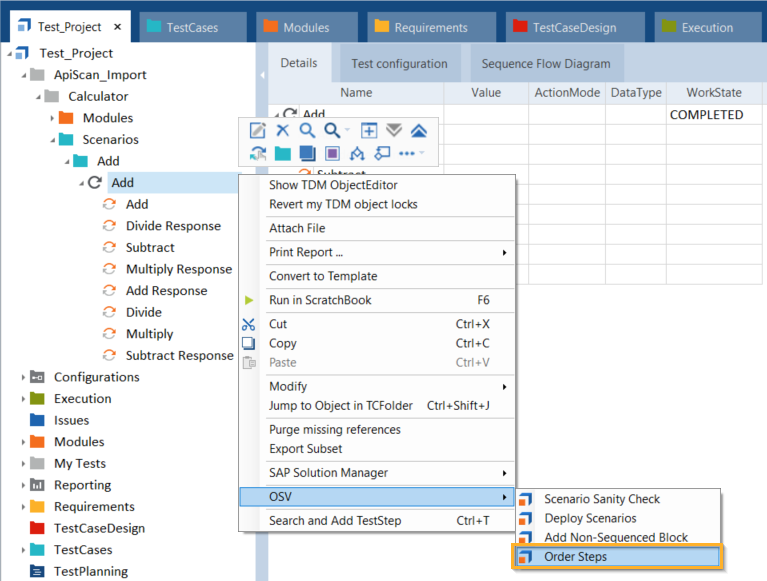 Sie können das Feature Order Steps verwenden, um die XTestschritte Ihrer OSV-Szenarien automatisch im Tosca Commander zu ordnen. Das System sucht nach Request-Response-Paaren und gleicht die Responses mit den zugehörigen Requests ab.
