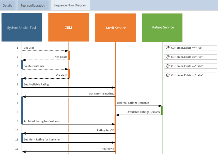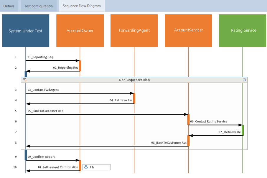 Wählen Sie den Reiter Sequence Flow Diagram. Im Reiter wird das Sequence Flow Diagram angezeigt.