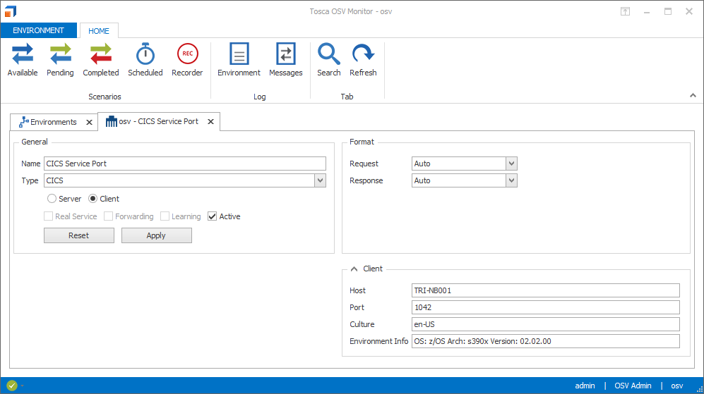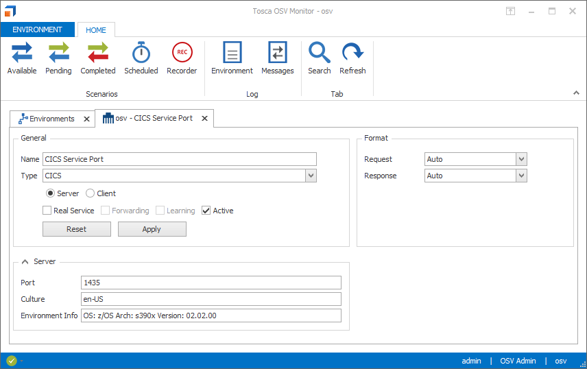Sobald Sie Ihren Serviceport konfiguriert haben, können Sie Ihre CICS-Verbindung zum Testen verwenden. Weitere Informationen hierzu finden Sie hier: siehe Kapitel " Mit Copybook-Nachrichten arbeiten".