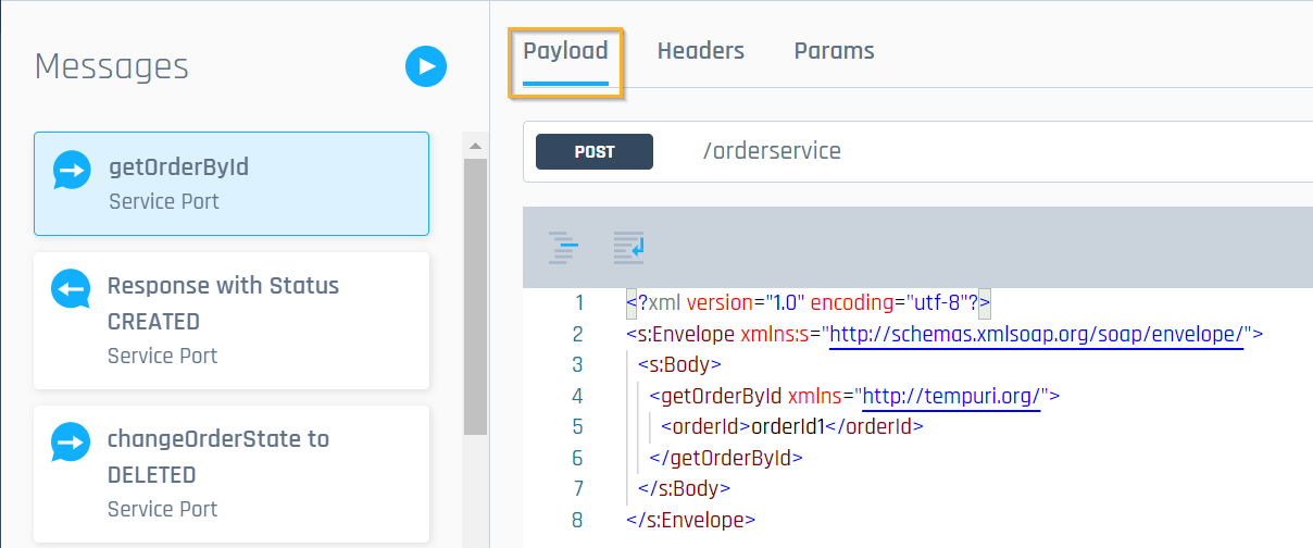 Klicken Sie oben auf die Reiter, um auf die Payload, Header oder Parameter Ihrer Nachricht zuzugreifen.