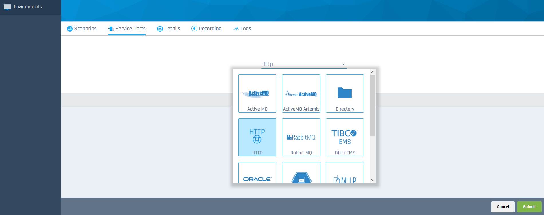 Das bedeutet, dass Sie die Technologie auswählen, die Ihr SUT zur Kommunikation verwendet, wie z. B. HTTP oder Java Message Service (JMS), und alle für den Verbindungsaufbau erforderlichen Angaben wie IP-Adressen oder Ports eingeben.
