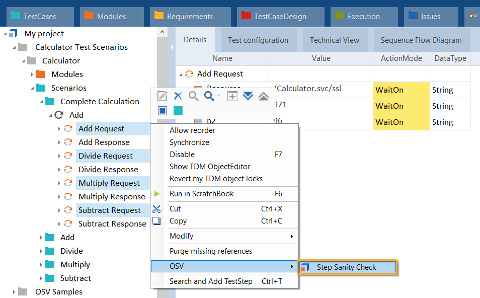 Wenn Sie Szenarien vom Tosca Commander zu OSV übertragen, führt das System automatisch einen Sanity Check durch.