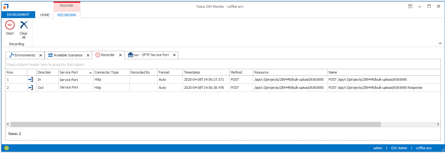 Das Aufzeichnen von Nachrichten können Sie direkt im Tosca OSV Monitor vornehmen.
