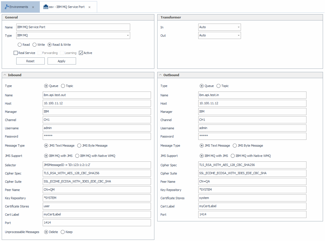 Gehen Sie zum Abschnitt Outbound des IBM MQ-Serviceports. Um diesen Abschnitt zu sehen, müssen Sie Ihren Serviceport auf Write oder Read & Write einstellen.