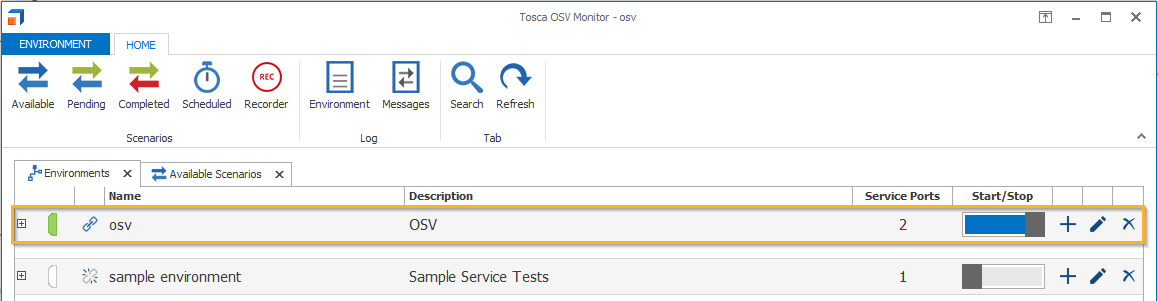 Klicken Sie auf den Start/Stop-Schalter für das Environment, das Sie starten möchten.