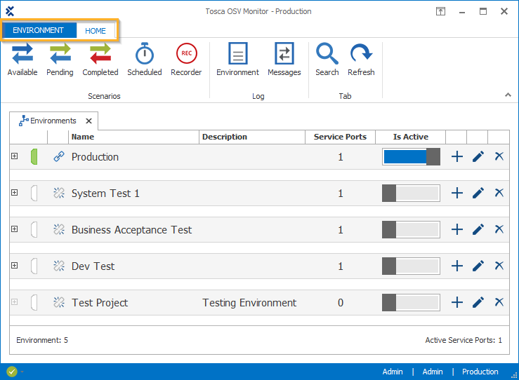 Der Tosca OSV Monitor ist Ihre zentrale Anlaufstelle für die Verwaltung der Service-Virtualisierung.