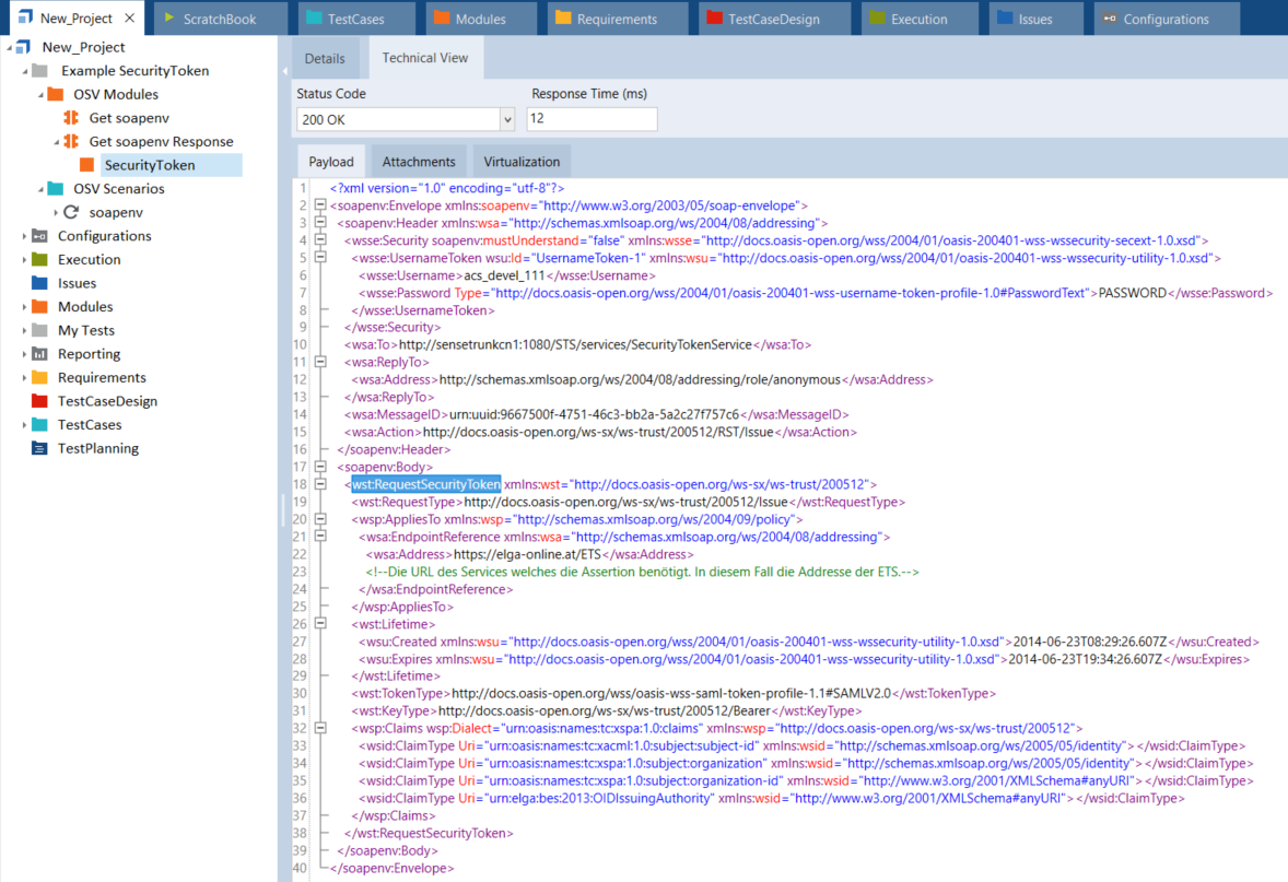 In diesem Beispiel erstellen Sie einen Tree-Buffer aus einer XML-Struktur. Erstellen Sie hierfür ein Tree-Modulattribut aus dem Sicherheitstoken in der Nachricht und den zugehörigen Knoten im Tosca Commander.