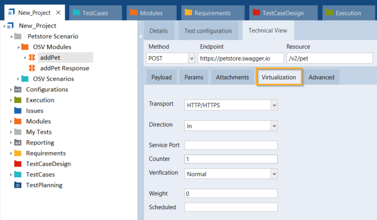 Der Reiter Virtualization ist Teil der Ansicht Technische Ansicht im Tosca Commander.