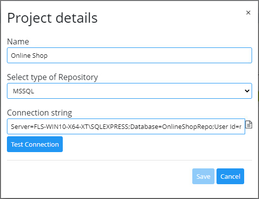 Um ein Projekt mit seinem Repository zu verbinden, benötigen Sie eine Verbindungszeichenfolge. Beachten Sie Folgendes: