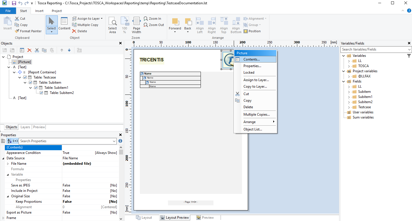 Importieren Sie einen Testfall-Report, der ein Logo von Tricentis und den Namen Tricentis im Header enthält. Die folgenden Schritte zeigen Ihnen, wie Sie dieses Bild und diesen Text ändern können.
